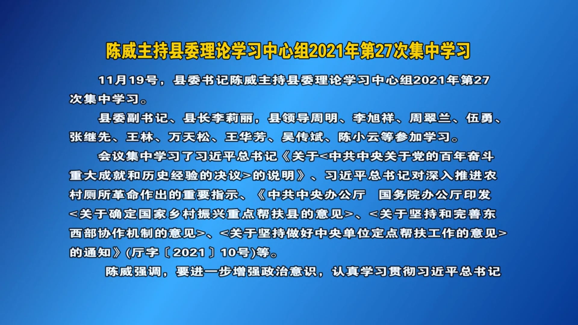 V视丨陈威主持县委理论学习中心组2021年第27次集中学习