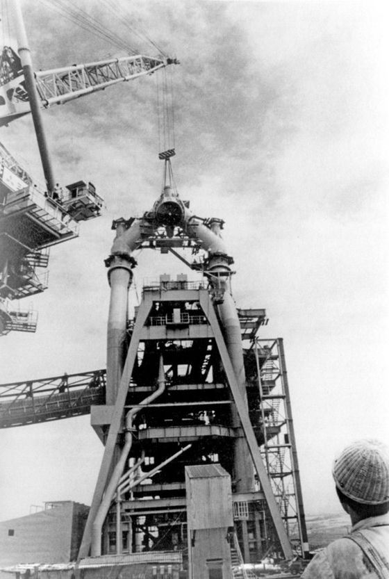 宝钢一号高炉安装工地一角