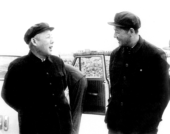 1977年,苏振华(左)与倪志福为宝钢勘察厂址