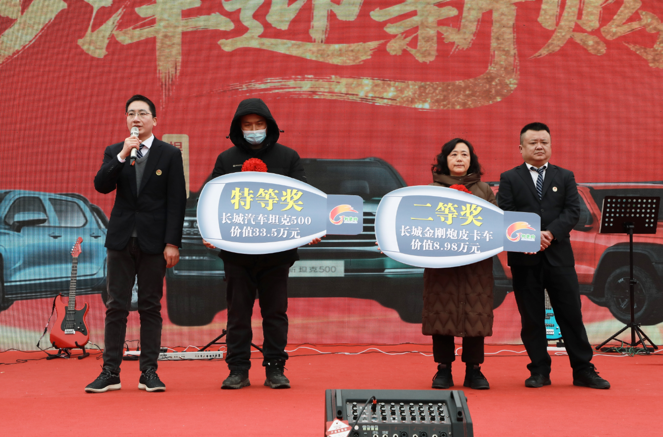 “我做点小生意,买的米面粮油还有肉类比较多,看到县里举办这个活动就想着来凑个热闹。”获得一等奖的孔先生说道。他笑着坦言,自己手气向来一般,便让妻子前来参与抽奖,没想到一举斩获大奖——将一等奖和三等奖全都收入囊中。“之前从没遇到过这么实在的活动,今天太幸运了,也是给2026年开了个好头!”孔先生表示,计划把抽到的坦克300给妻子日常出行使用,电动自行车则送给家里老人,方便接孩子上下学。