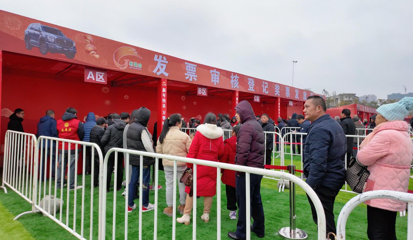 活动现场人声鼎沸、秩序井然,处处洋溢着欢乐祥和的节日氛围。奖票发放区、刮奖区、兑奖区划分清晰,身穿红色马甲的工作人员各司其职,一边耐心核验消费发票,一边细致解答兑奖规则。参与者们有序排队,翘首以盼幸运的降临。为保障活动公平公正,本次活动的6万张奖票实施严格管控,采取每日限量发放2万张的方式,剩余奖票经多部门联合核验后统一封存,次日再有序派发,让每一位参与者都能安心畅享抽奖乐趣。