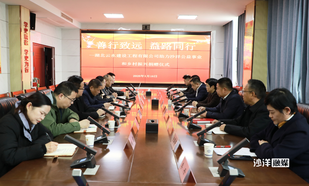 1月16日,善行致远 益路同行——湖北云水建设工程有限公司助力沙洋公益事业和乡村振兴捐赠仪式在沙洋县水利和湖泊局举行。县委常委、副县长李俊怡,副县长谢振波等出席捐赠仪式。