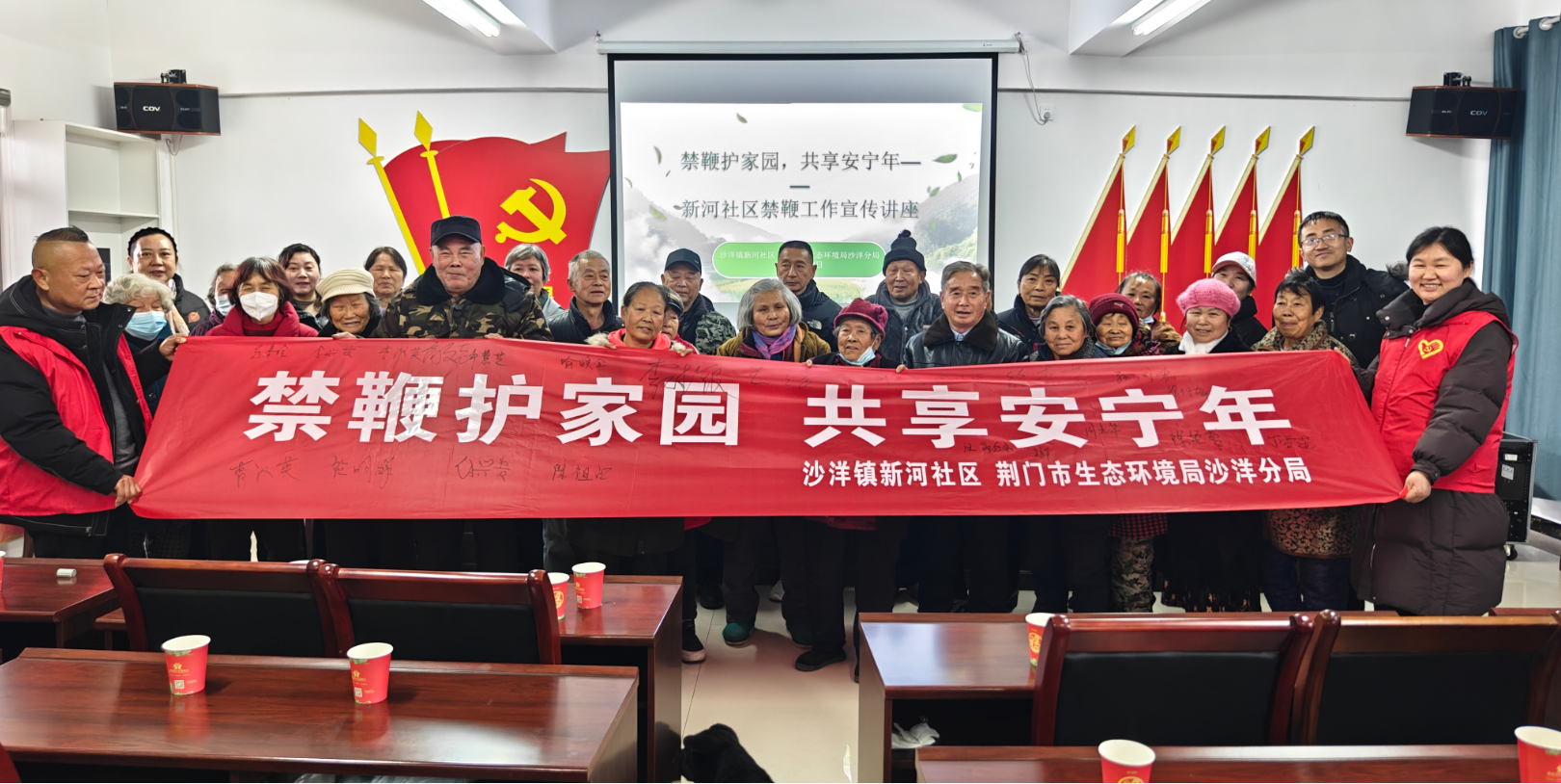 2月3日,沙洋镇新河社区联合市生态环境局沙洋分局开展“禁鞭护家园 共享安宁年”主题宣传活动,引导居民自觉遵守禁鞭规定,携手守护平安环保新春。