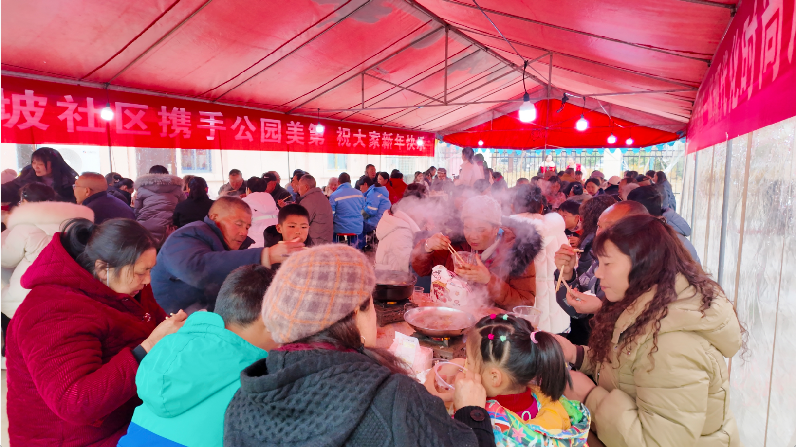 年味大席区,圆尾肉炖萝卜猪血、拾桥亮卷、马良蒸笼格子等沙洋特色菜品摆满餐桌,香气四溢,市民们围桌而坐,品尝地道农家风味,拉家常、话新春,感受团圆的温暖。“提前预订了年味大席,全是沙洋的特色菜,味道特别正宗,比自己在家做方便多了,还能感受热闹的年味。”市民孙女士一家吃得其乐融融。