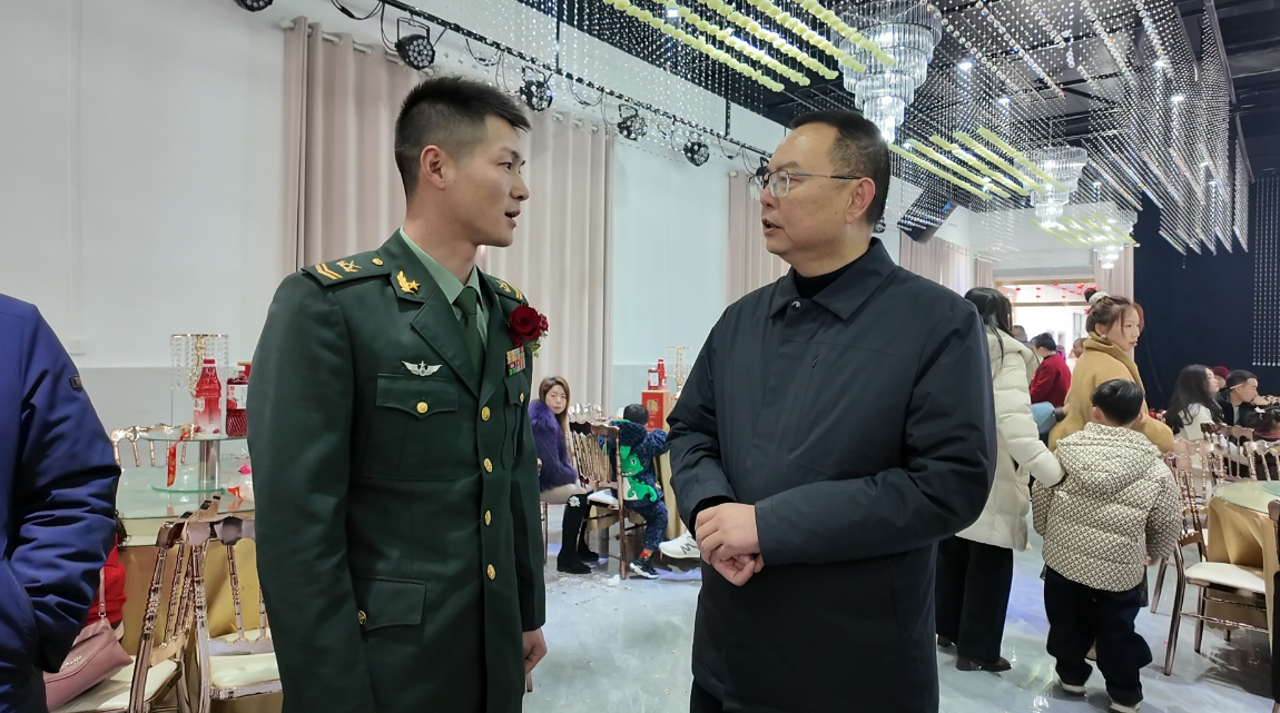 2月7日,沙洋县退役军人事务局开展现役军人家庭新春走访慰问活动,为5户现役军人家庭送去慰问物资与节日祝福,并将现役军人潘晨荣立三等功的喜报送到其婚礼现场,以特殊的方式致敬军营功臣,让军人军属共享荣光、感受温暖。