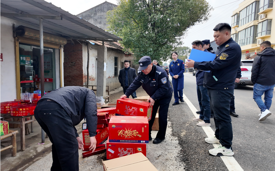 2月19日,沙洋县应急管理局联合县市场监督管理局、县公安局等多部门开展烟花爆竹“打非治违”专项行动,全力保障春节期间烟花爆竹领域安全稳定。