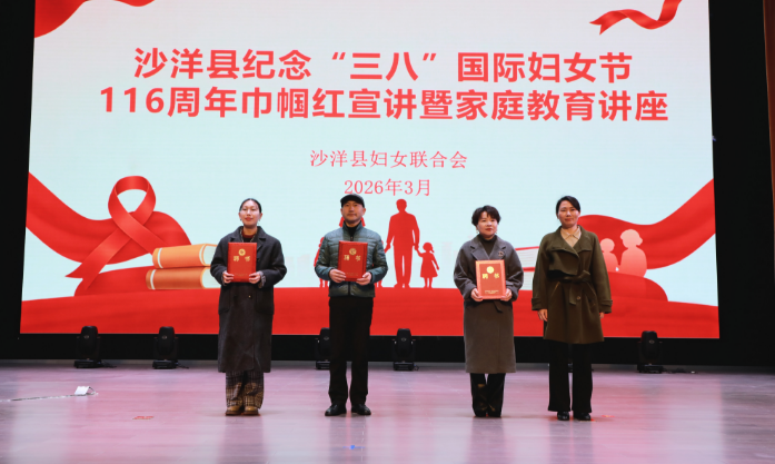 活动现场为沙洋县家庭教育专家、公益红娘颁发聘书,进一步建强基层服务队伍,为家庭教育指导、婚恋帮扶及妇女儿童关爱工作提供专业支撑。先进典型事迹宣讲环节,三位来自不同领域的女性代表依次登台。她们以朴实的语言、鲜活的事例,讲述立足岗位履职尽责、深耕基层服务群众、用心用情呵护儿童成长的奋斗故事,生动展现了新时代女性自尊、自信、自立、自强的精神风貌,传递出昂扬向上、向善向美的巾帼正能量。