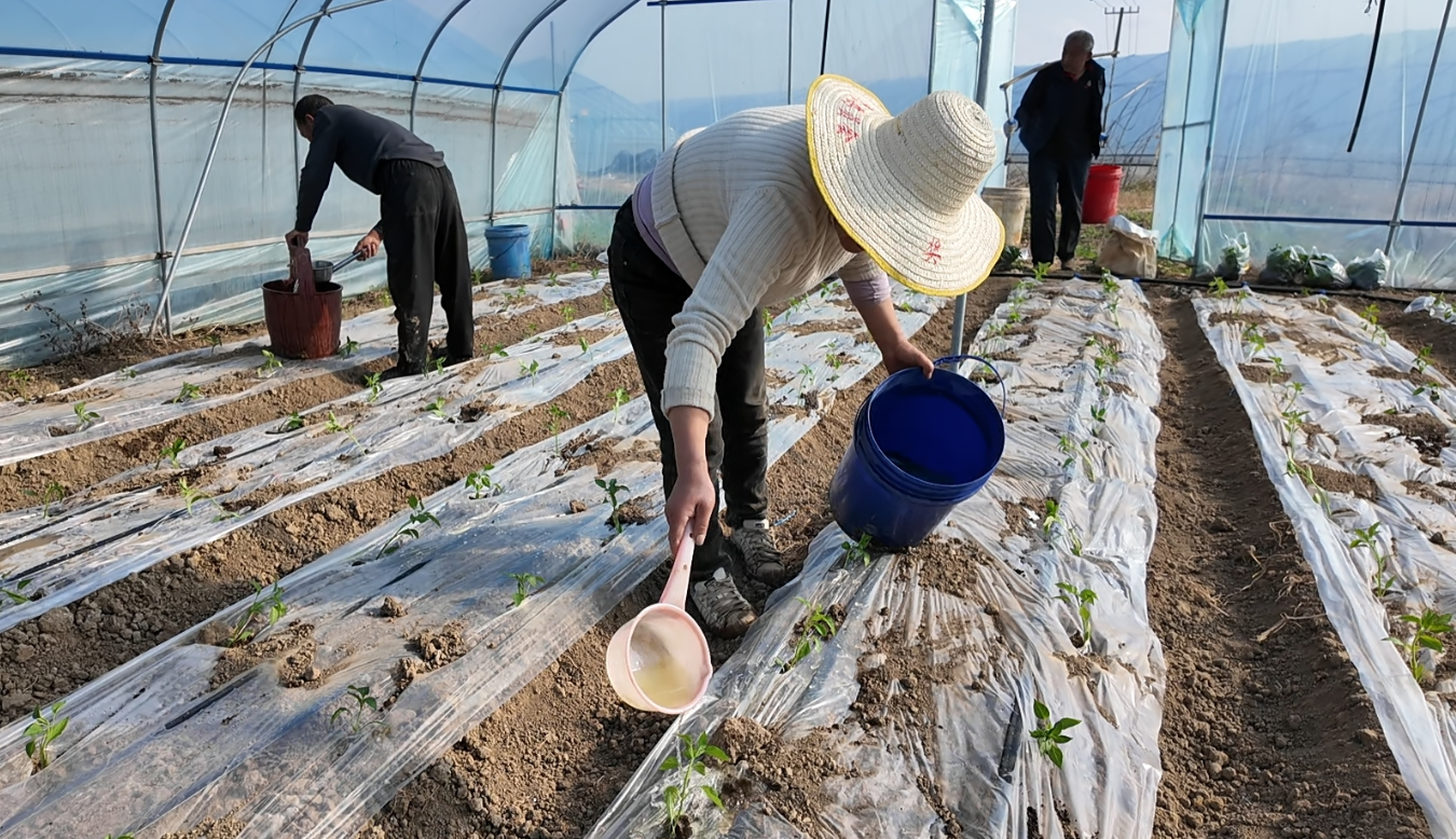 走进种植基地,翻耕平整的田垄上覆盖着保墒增温的地膜,村民们默契配合、分工有序,小心翼翼地起出健壮的辣椒苗,熟练完成打窝、定植、浇定根水等一系列工序。一株株嫩绿挺拔的辣椒苗整齐排列,在春日阳光下焕发出勃勃生机,勾勒出一幅人勤春早的农耕画卷。