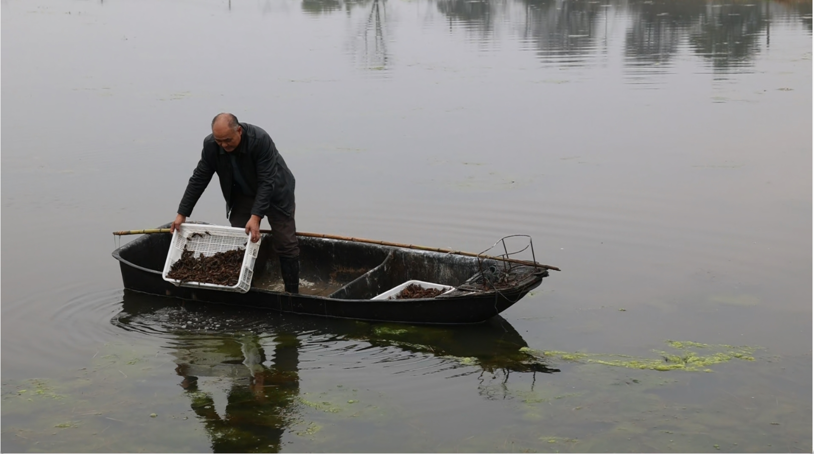 清晨的薄雾还未散尽,在沙洋县毛李镇高兴村,60岁的养殖户郑培昌已经划着一叶扁舟,在自家虾塘里忙碌开来。