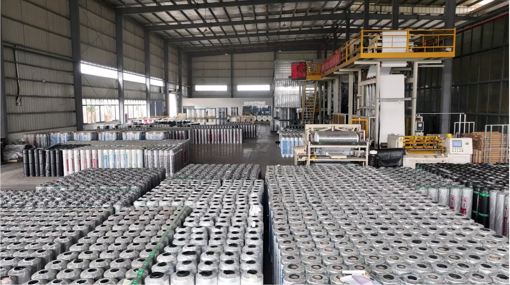 “我们的高分子防水卷材在抗老化性能和人工成本节约上优势显著,抗老化年限可达15年以上,且施工简便,无需投入大量人力。尤其是新研发的沥青自粘TPO防水卷材,施工非常方便。”谈及产品优势,许家松满脸自豪。