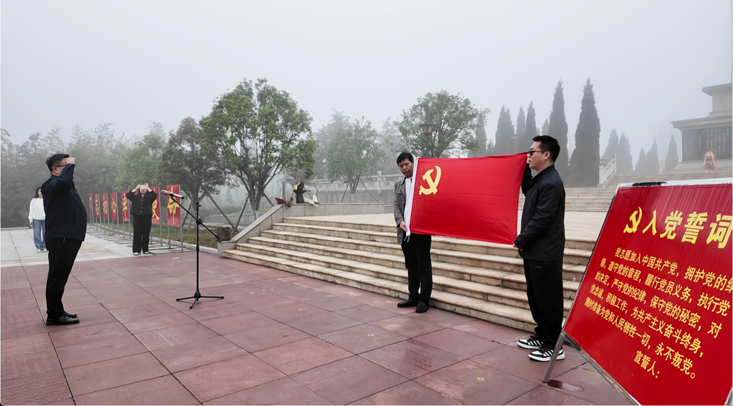 默哀毕,各单位党员代表缓步上前,向革命烈士纪念碑敬献花篮、整理缎带,集体鞠躬致敬。全体党员面向党旗,高举右拳,重温入党誓词。铮铮誓言,铿锵有力,表达了继承先烈遗志、践行初心使命的坚定决心。随后,大家依次敬献鲜花、瞻仰烈士纪念碑,在庄严肃穆的氛围中感悟革命先辈的家国情怀,汲取奋进力量。
