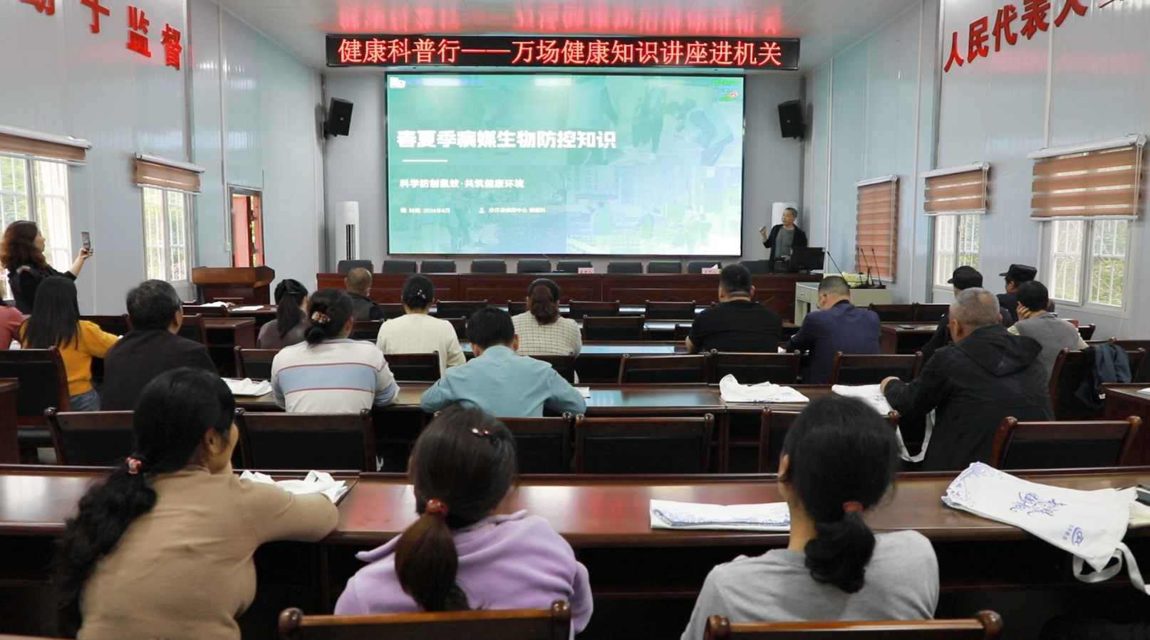 2026年4月是第38个爱国卫生月。近日,县疾控中心联合县中医医院走进县机关事务服务中心,开展健康科普行——万场健康知识讲座暨健康服务活动,把健康知识与暖心服务送到干部职工身边。