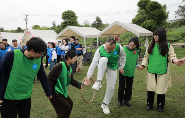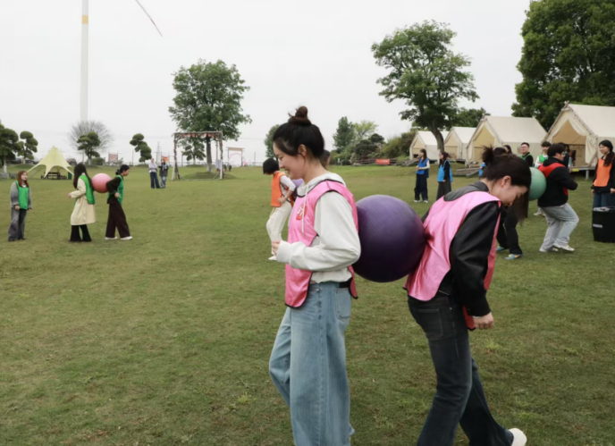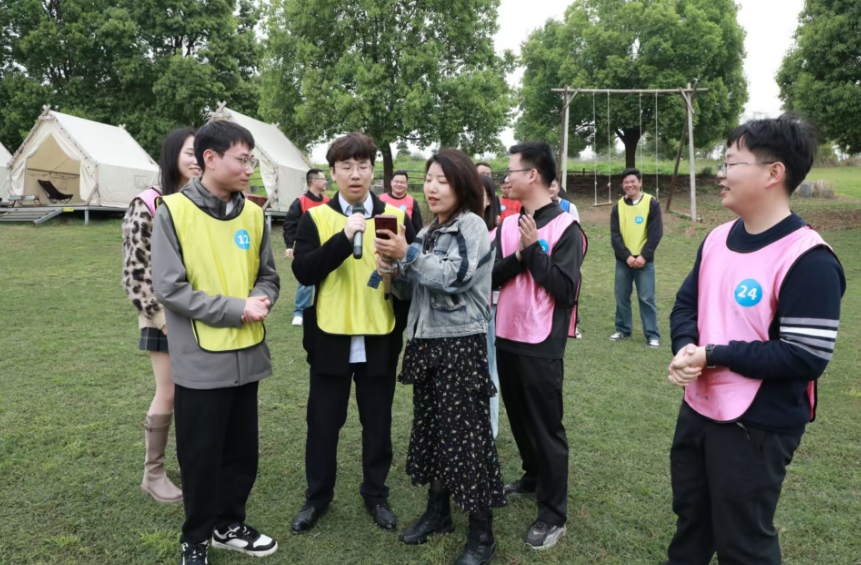 春日的营地草木葱茏、景致宜人,轻松浪漫的氛围一扫大家初见时的拘谨。为拉近彼此距离,活动精心设置多项趣味互动环节,以游戏破冰、以协作交心。“萍水相逢·一圈到底”环节中,大家齐心协力传递道具,在团队协作中快速熟络;“心有灵犀·你来比划我来猜”妙趣横生,灵动演绎与踊跃抢答点燃全场气氛;“同甘共苦·合力运球”考验双人配合,并肩闯关间默契悄然升温。随后的自由交流环节,大家围绕工作生活、兴趣理想坦诚畅谈,在惬意闲适的氛围中邂逅同频伙伴。