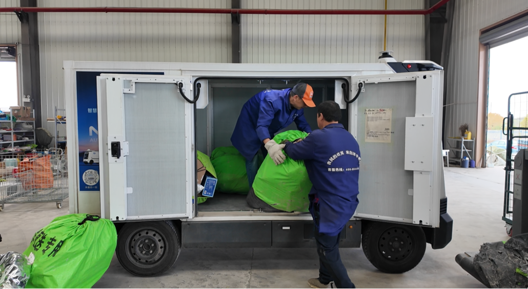 在中国邮政集团湖北省沙洋县分公司供配中心,工作人员将包裹有序放入智能无人快递车货仓。装载完成后,工作人员通过手机APP选定始发地与目标快递驿站,一键下达指令,智能无人快递车随即自动启动,以最高40公里/小时的速度,满载包裹开启自动配送。